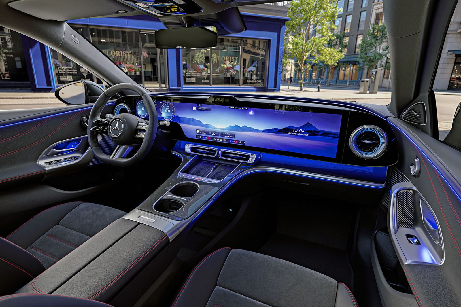 Punctul central al habitaclului este, fără îndoială, opțiunea pentru MBUX Hyperscreen (sau varianta Superscreen), care se întinde pe aproape întreaga lățime a planșei de bord. Sub această suprafață de sticlă rulează noul sistem de operare MB.OS, dezvoltat in-house de Mercedes-Benz.