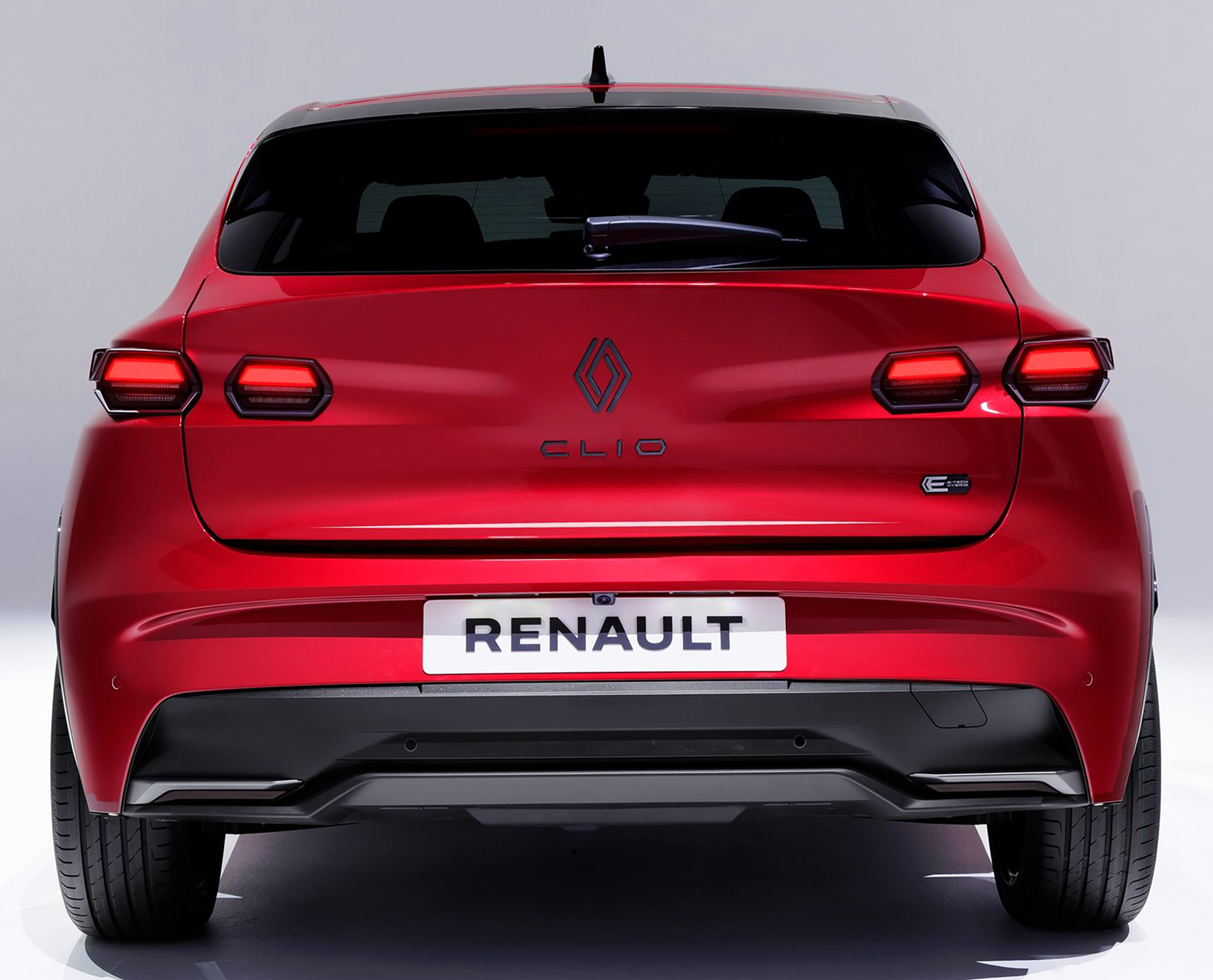 Privit din spate, Clio 2026 adoptă un stil mai musculos, cu un hayon bine proporționat și blocuri optice divizate, inspirate din designul modelelor sport ale mărcii. Linia portbagajului este fermă, iar luneta înclinată oferă o siluetă compactă și modernă. Detaliul rafinat al mânerelor spate integrate discret în montantul ușii a fost păstrat, amintind de eleganța generațiilor anterioare.
